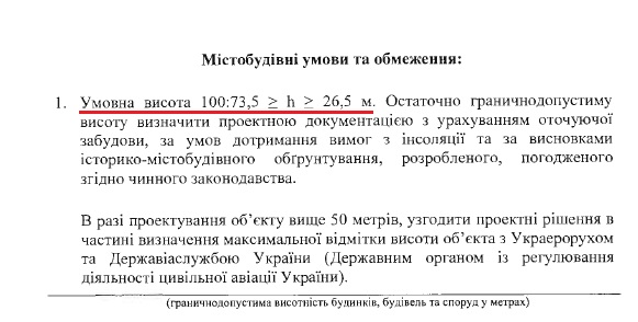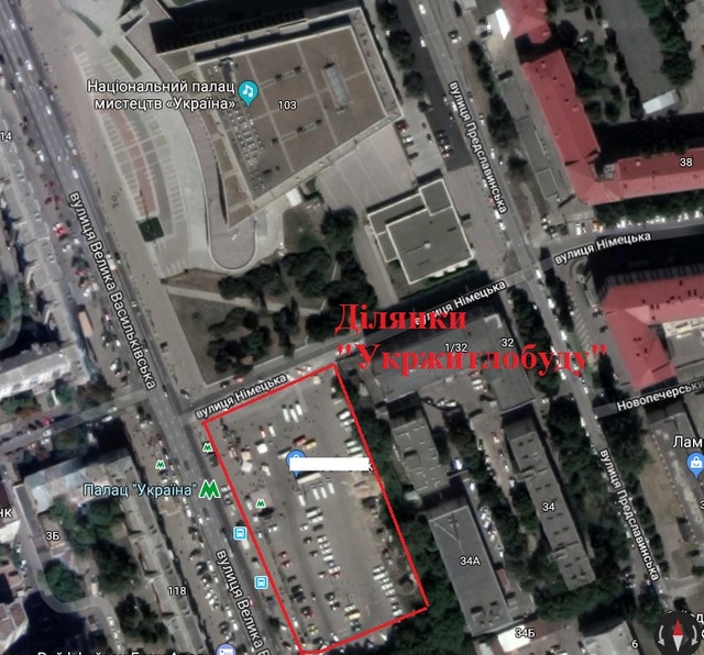 Згідно з цим документом, нове будівництво планується на двох ділянках – 0,64 га та 0,21 га. Перша належить «Укржитлобуду» на праві приватної власності, а другу фірма орендує у міста. Відзначимо, що ці ділянки знаходяться прямо біля входу в метро на ст. «Палац Україна».