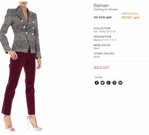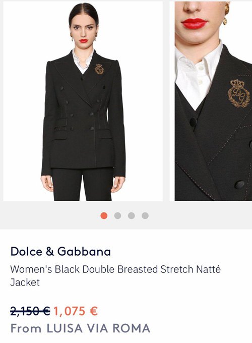 Такой пиджак изначально стоил 2150 евро, а сейчас по скидке – 1075 евро.