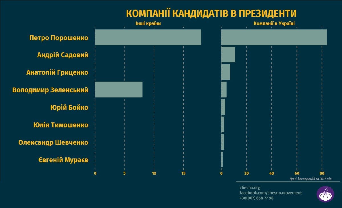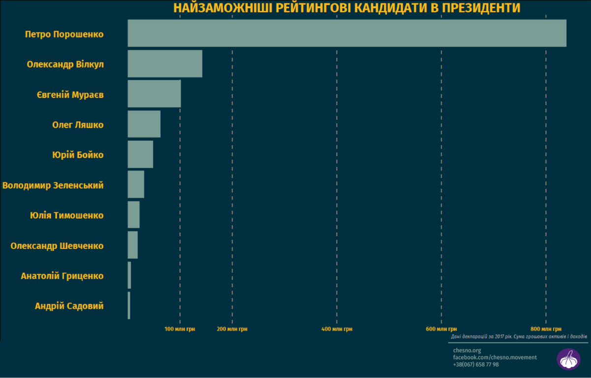 Президент Украины Петр Порошенко намного богаче других кандидатов на высшую должность в стране, если судить по их декларациям за 2017 года.