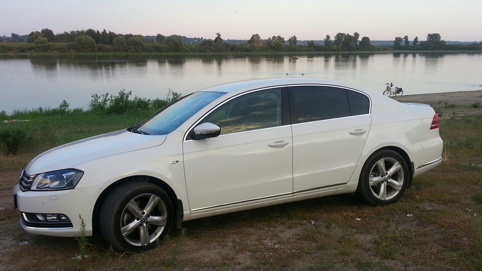 Речь идет об автомобиле Volkswagen Passat B7 белого цвета.