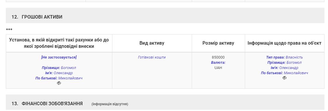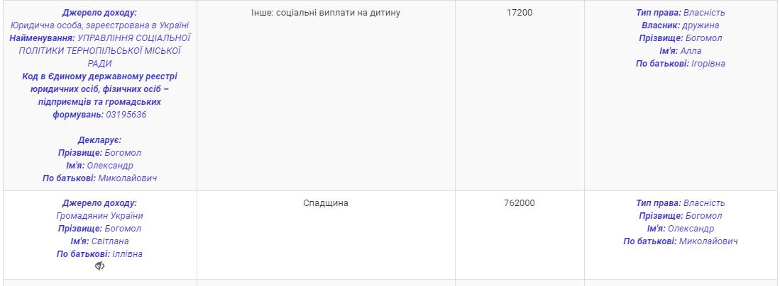 В частности, начальник Главного управления Национальной полиции в Тернопольской области получил 762 000 гривен наследства от Богомол Светланы Ильиничны. Это он отметил в своей декларации.