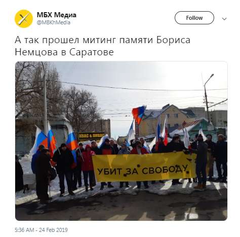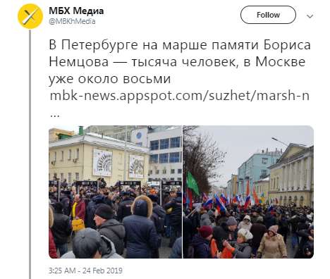 Марш памяти Бориса Немцова проходит в Москве и ряде других российских городов в воскресенье, 24 февраля.