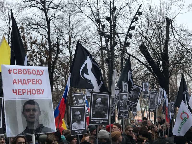 Также можно заметить плакаты с лицами политзаключенных, в том числе украинских - в частности, Романа Сущенко и Олега Сенцова, передает УНИАН
