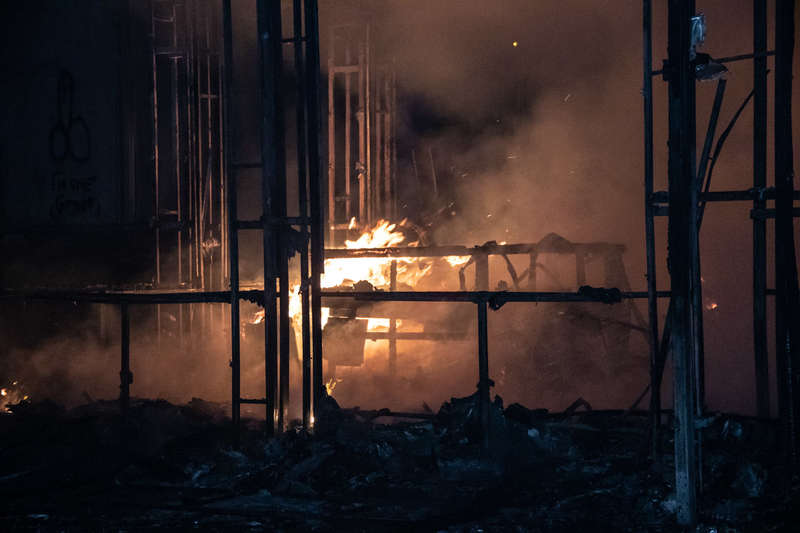 Как рассказали очевидцы, пламя вспыхнуло в магазине строительных материалов. Огонь охватил все помещение магазина, а затем перекинулось на соседнюю кофейню. В результате полностью выгорели оба помещения — от них остались только металлические каркасы.