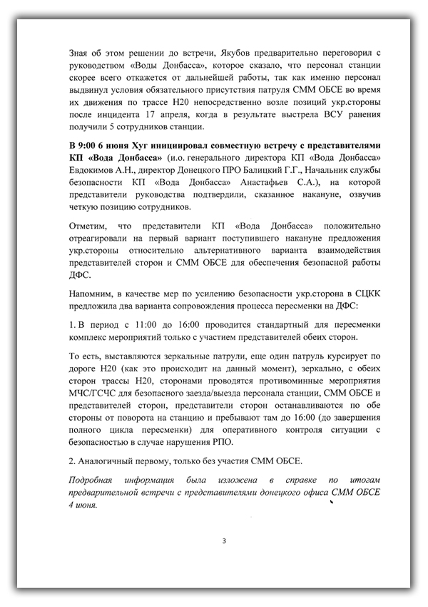 Що особливо впадає в очі у звіті Вахітова, – це ситуація щодо підприємства «Вода Донбасу». Ми знаємо, що це – найбільше підприємство, частина якого знаходиться на неконтрольованій території. Україна вкладає величезні кошти, щоб не припинити водопостачання регіону. Так от, місія відмовилася там проводити своє інспектування, при цьому росіяни винними намагаються представити обидві сторони: і українську, і ОРДЛО-вську. Безумство – думати, що Україна буде стріляти по підприємствах, в які вкладає десятки мільйонів доларів. Але тональність звіту саме така: «стороны нарушают».