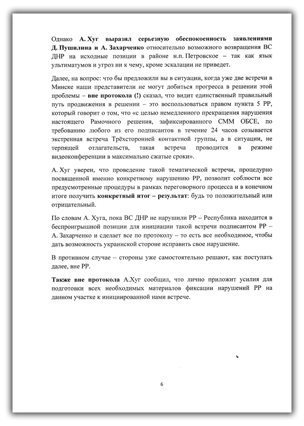 Доповідь про результати зустрічі Вахитова з Хугом в червні 2018 року