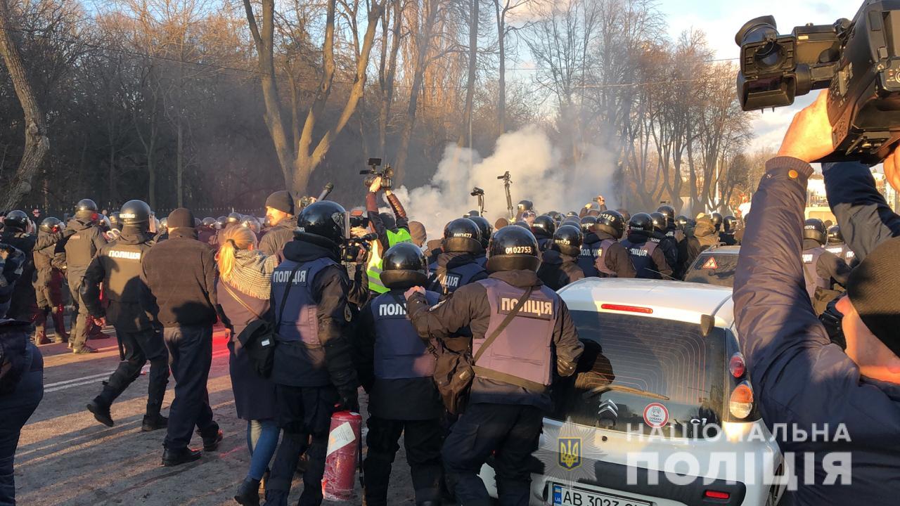 В Виннице в полицейских полетели камни и пиротехника. Задержали трех протестующих