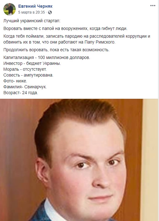 "Вижу его 100% перспективу. Факты воровства очевидны!", - добавил Черняк.
