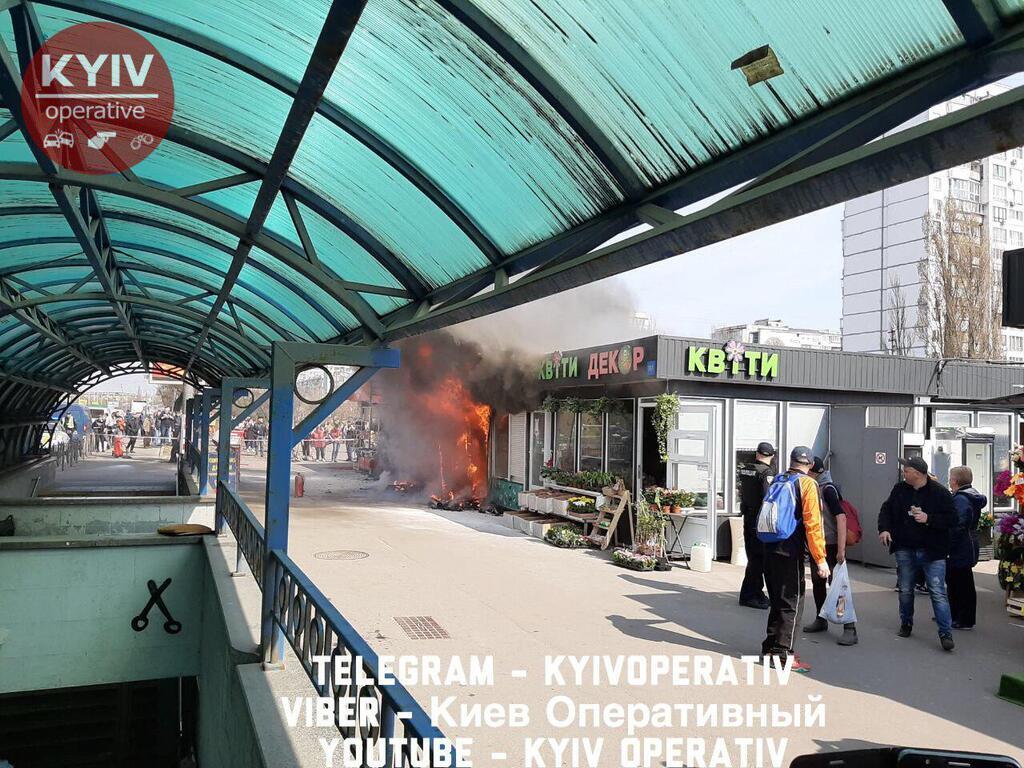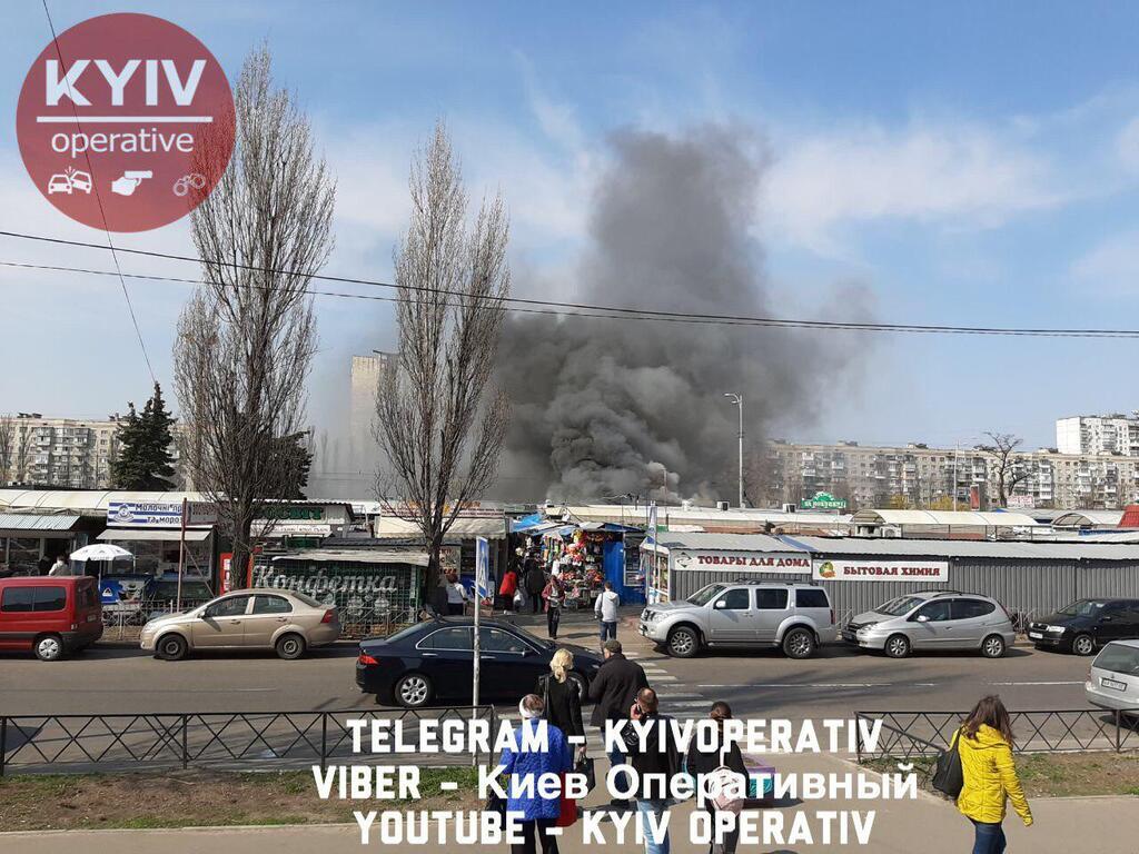 Позже в пресс-службе ГСЧС Киева сообщили, что пожар произошел в павильоне по продаже одежды, после чего огонь распространился на соседние киоски. Общая площадь пожара составила 100 квадратных метров. В 15:16 пожар был ликвидирован. Пострадавших нет.