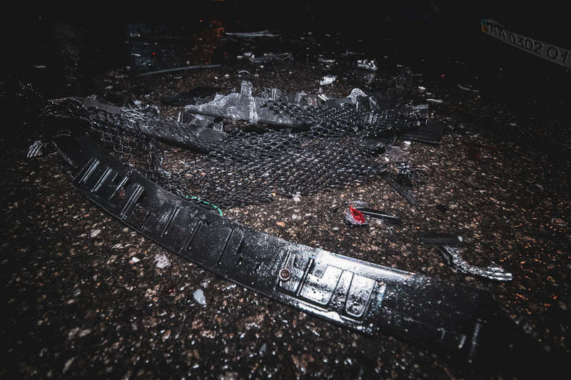 В результате удара у Hyundai значительно повредилась передняя часть, включая моторный отсек. Детали от авто разлетелись по дороге. А у грузовика вследствие ДТП отпали задний бампер и запасное колесо.