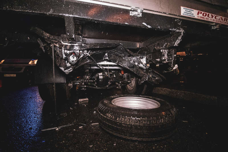 Серьезное ДТП с грузовиком в центре Киева: детали разлетелись по дороге