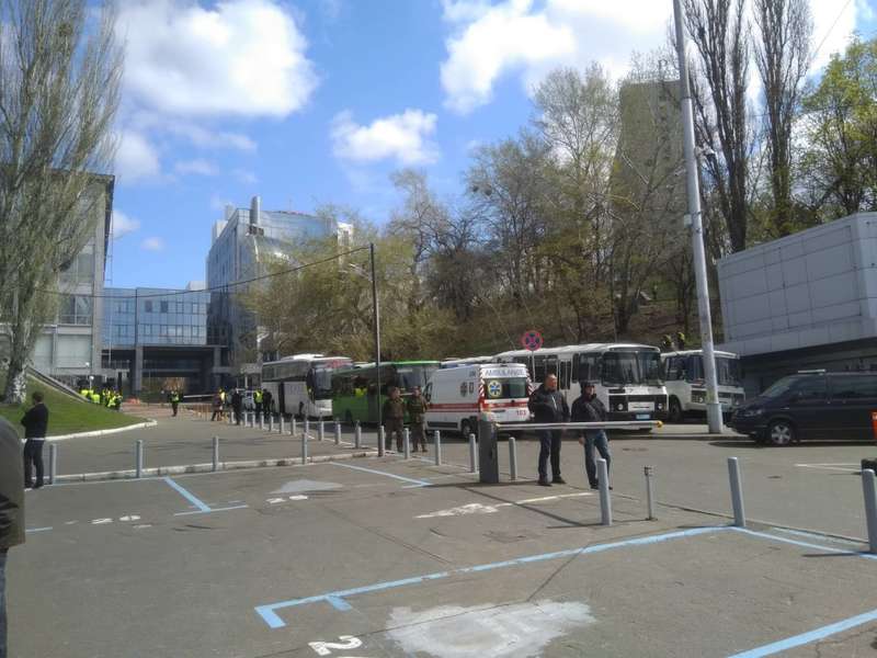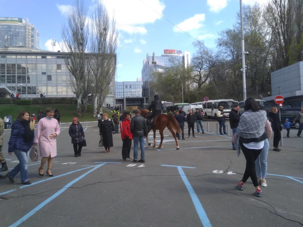 14 апреля в НСК «Олимпийский» должны состоятся дебаты кандидата в президента Петра Порошенко. С самого утра у комплекса стоят автомобили патрульных полицейских и групп быстрого реагирования, а также конная полиция.