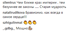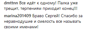 «Чем ближе крах империи, тем безумнее ее законы… Старая мудрость», «Брависимо, как всегда в самое сердце!», «Мощно», «Ура, товарищи, ура! Помойки всем!», «Ну и как назвать это правительство, кроме как фашистским?», «Браво Сергей! Спасибо за неравнодушие и смелость все называть своими именами!», «Все идёт к одному! Палка уже трещит, терпениям приходит конец!» — писали пользователи сети.