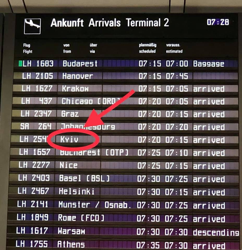 Аэропорт Мюнхена первым в Германии присоединился к инициативе #CorrectUA и изменил транслитерацию названий украинских городов на немецком и английском языках.