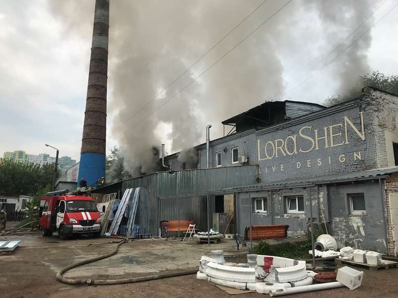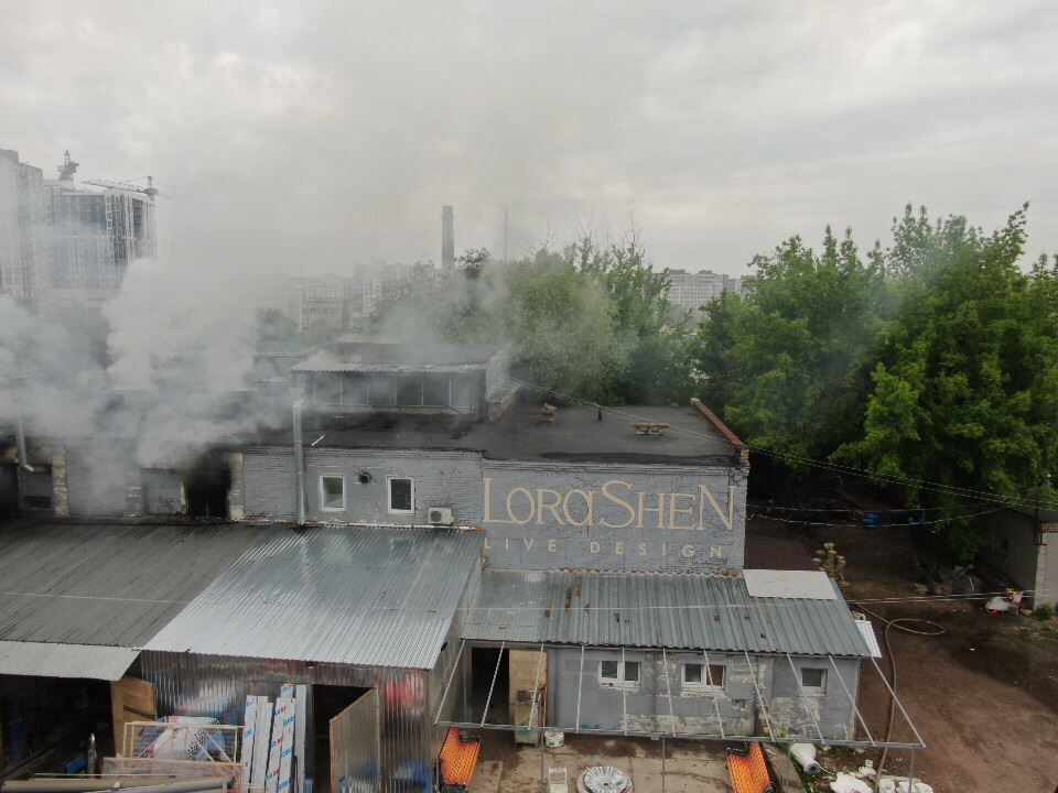 Пожар начался в цеху дизайнерских изделий. Над зданием стоит огромный столб дыма. На место оперативно прибыли спасатели, пожару присвоили повышенный ранг сложности из-за того, что, помимо мебели, внутри находились канистры с топливом и маслом, а также газовые и кислородные баллоны.
