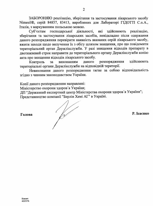 Гослекслужба приняла такое решение, из-за того что на произведенном в Италии препарате есть маркировка только на польском языке.