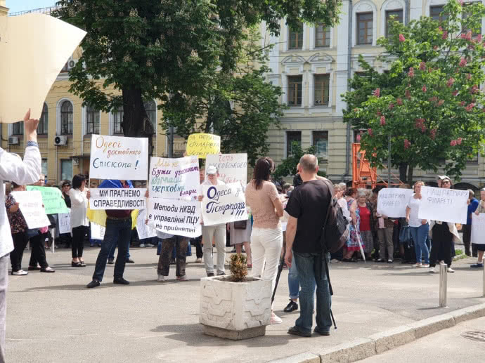 Среди плакатов есть, в частности такие: "Методы НКВД в управлении ПЦУ", "Одесса с Патриархом". "Филарет - наш Патриарх", "Епифаний, не разрушай церковь".