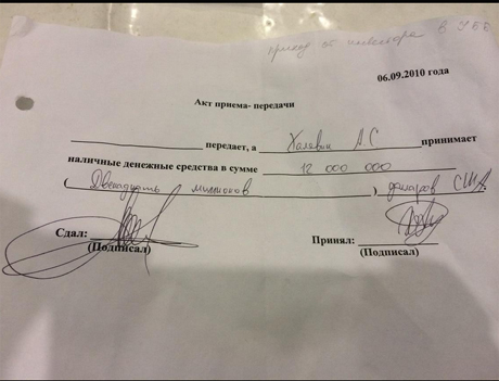 Также там есть большой перечень поступлений от "спонсоров", среди которых есть бумага, датированная 6 сентября 2010 на получение 12 миллионов долларов США неизвестным гражданином Халявиным А.С. На бумаге ручкой дописано "поступления от инвестора в УББ". На других подобных документах вообще не указаны фамилии, однако содержатся подписи.