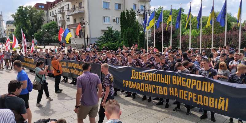 О п’ятнадцятій годині Національний Корпус разом з представниками ветеранських рухів України прийшли на Банкову вимагати президента Зеленського наступного: