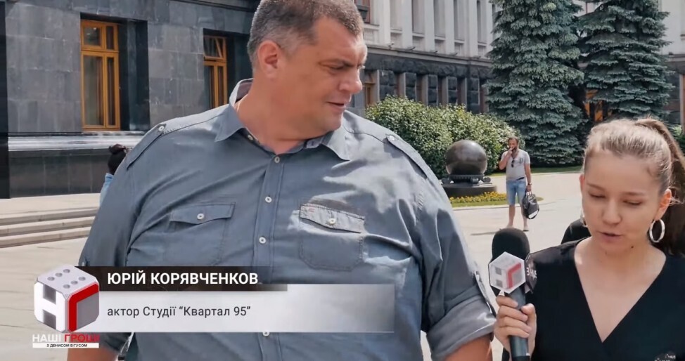Кроме медийщиков, Администрацию президента посетили экс-коллеги Зеленского по Студии "Квартал 95" — актеры Юрий Корявченков и Мика Фаталов.