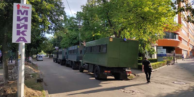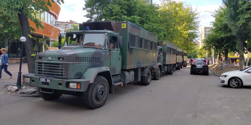 Наразі поліція оточила канал NewsOne. На місце прибули шість фур національної гвардіх, 10 патрульних машин нацполіції та 3 автобуса поліції особливого призначення.