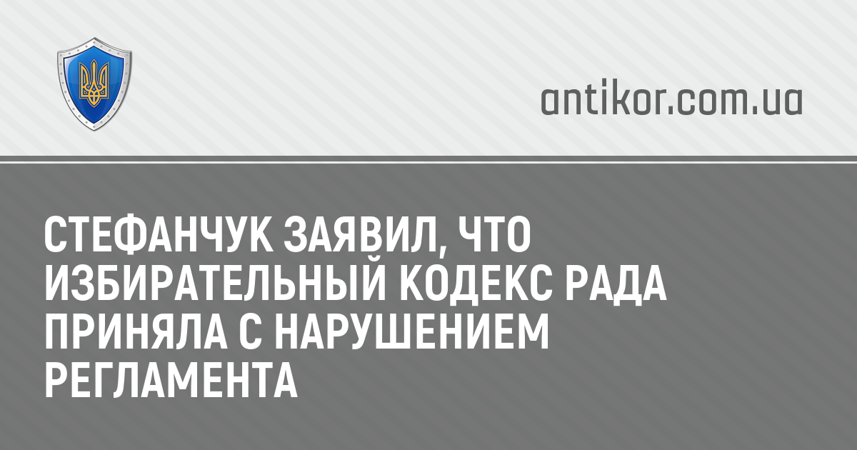 Принятый народными депутатами 11 июля новый Избирательный кодекс был вынесен с нарушением регламента Верховной Рады. Об этом в эфире программы "Право на владу" на телеканале "1+1" заявил представитель президента Украины в парламенте Руслан Стефанчук.