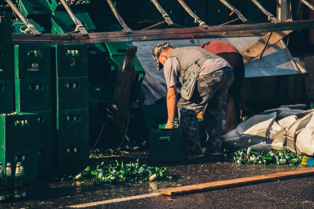 Пользователей сети возмутил поступок парня, решившего подзаработать на продаже пива из фуры, которая 12 июля попала в ДТП под Киевом, на Бориспольской трассе. Большая часть бутылок из авто разбилось вдребезги.