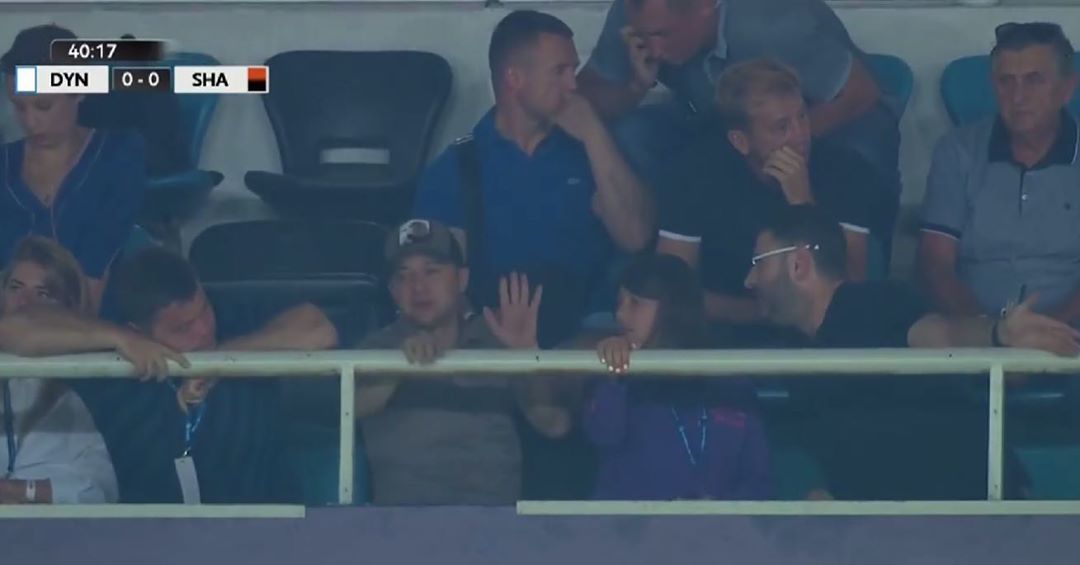 Как следует из телевизионной трансляции, Зеленский смотрит за матчем с трибун вместе с главой Офиса президента Андреем Богданом.