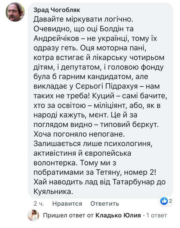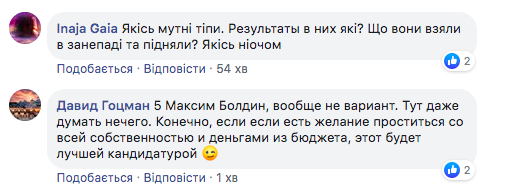Максим Болдин – вообще не вариант. Тут даже думать нечего. Конечно, если есть желание проститься со своей собственностью и деньгами з бюджета, этот будет лучшей кандидатурой», - пишет пользователь Давид Гоцман.