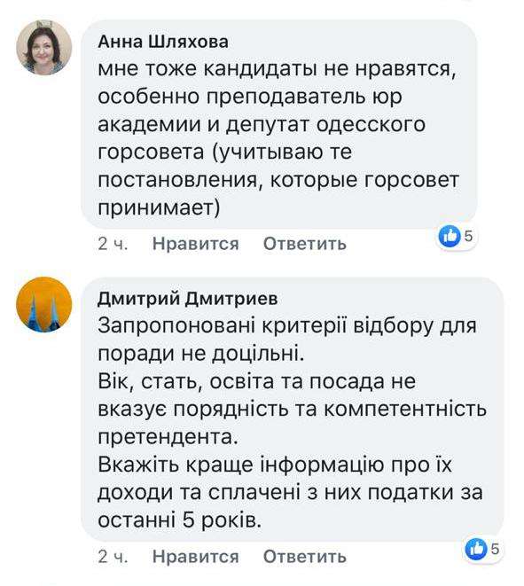 В списке руководитель общественной организации «Украинская ассоциация вторичных металлов и ресурсов» Андрей Андрейчиков, активистка и основательница «Открытой европейской школы» Татьяна Петракевич, депутат Одесского горсовета, основательница БФ «Французский бульвар» Ольга Квасницкая, бизнесмен и инвестор Максим Куций, а также скандальный соратник и адвокат Эдуарда Гурвица в бытность мэром Одессы.