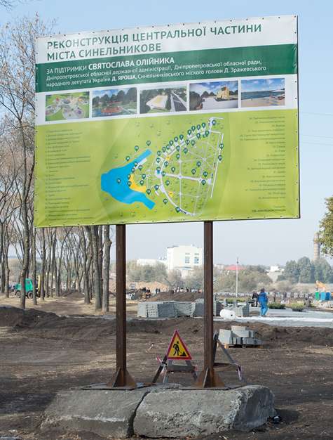 Но работы остановились, когда прошли выборы, а Олейник стал первым заместителем председателя Днепропетровского облсовета. При этом, в парке почти установили бордюры, почти проложили электрические кабели и тротуарную плитку, почти закончили прокладку сетей наружного освещения. Мы решили посмотреть, как сейчас выглядит парк от Олейника.