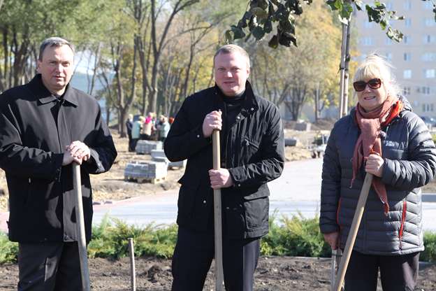 С лопатой на фоне почти законченного парка сфотографировался сам Олейник.