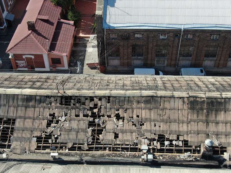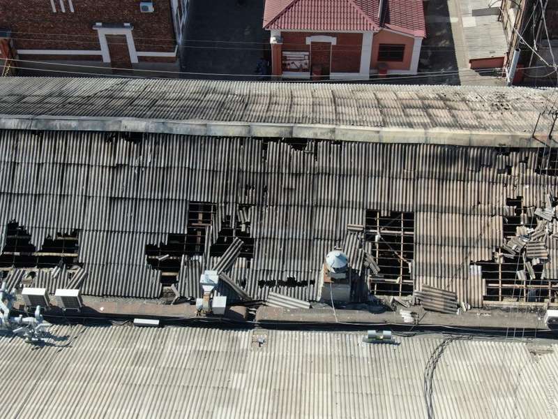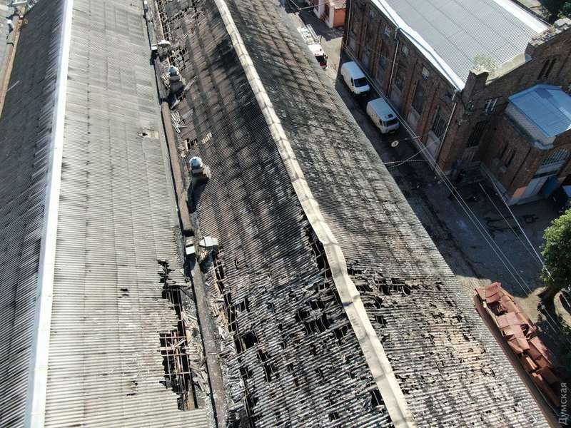 "По следам возгорания на крыше можно понять, что пламенем была объята половина второго этажа здания. Кое-где на крыше есть дыры. Само здание уцелело", - пишут журналисты.