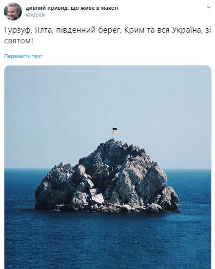 Желто-синий флаг запестрел в городах Севастополь и Алушта. В последнем жители подняли его над одним из домов города вечером 23 августа - в День флага Украины. Также национальный символ поставили на горе и на скале в море на аннексированном полуострове.