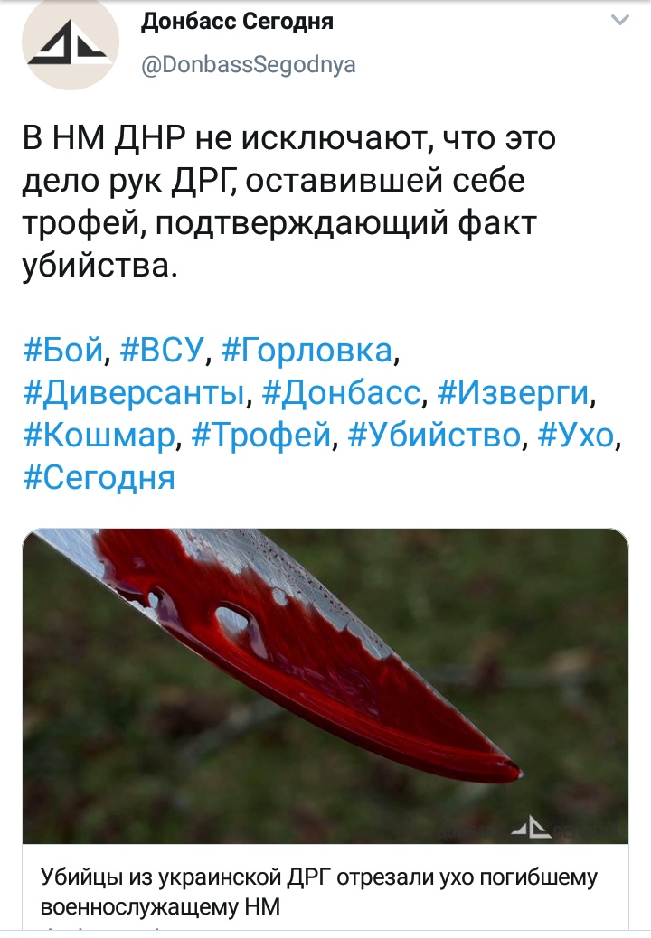 - ой... Какие же они все-таки нелюди... Я не удивлюсь, если ухо они в качестве подарка командиру принесли или комусь в коллекцию из Рады, шоб им премию или зарплату выдали поскорее