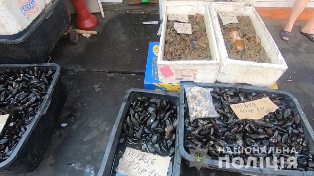 «По результатам рейда на территории рынка «Привоз» правоохранители изъяли сто пятьдесят килограммов мидий, порядка двадцати пяти килограммов раков и рыбы семейства осетровых, занесенных в Красную книгу Украины», — отметили в ведомстве