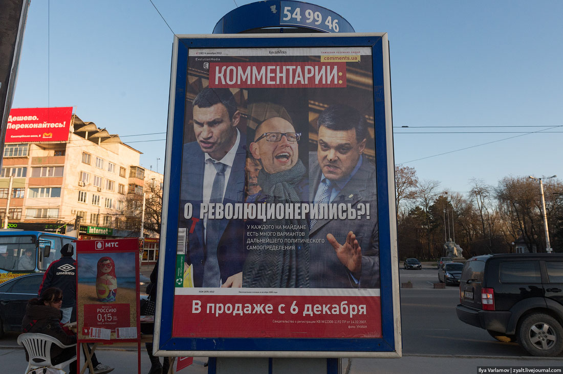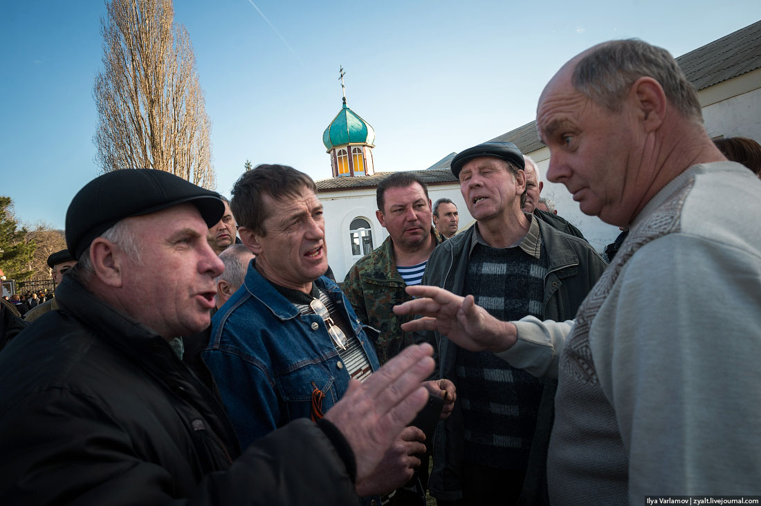 35. Простые люди спорят о будущем Украины. Споры горячие, иногда они переходят в драки и мелкие потасовки. Некоторые приходят подвыпившие из близлежащих деревень, чтобы донести свою «единственно правильную позицию». Мысли разные от «Передайте Обаме своему, что мы его не пустим! Нам ЦРУ сюда не надо!» до «Отпустите мальчиков домой, им поесть нормально надо!»