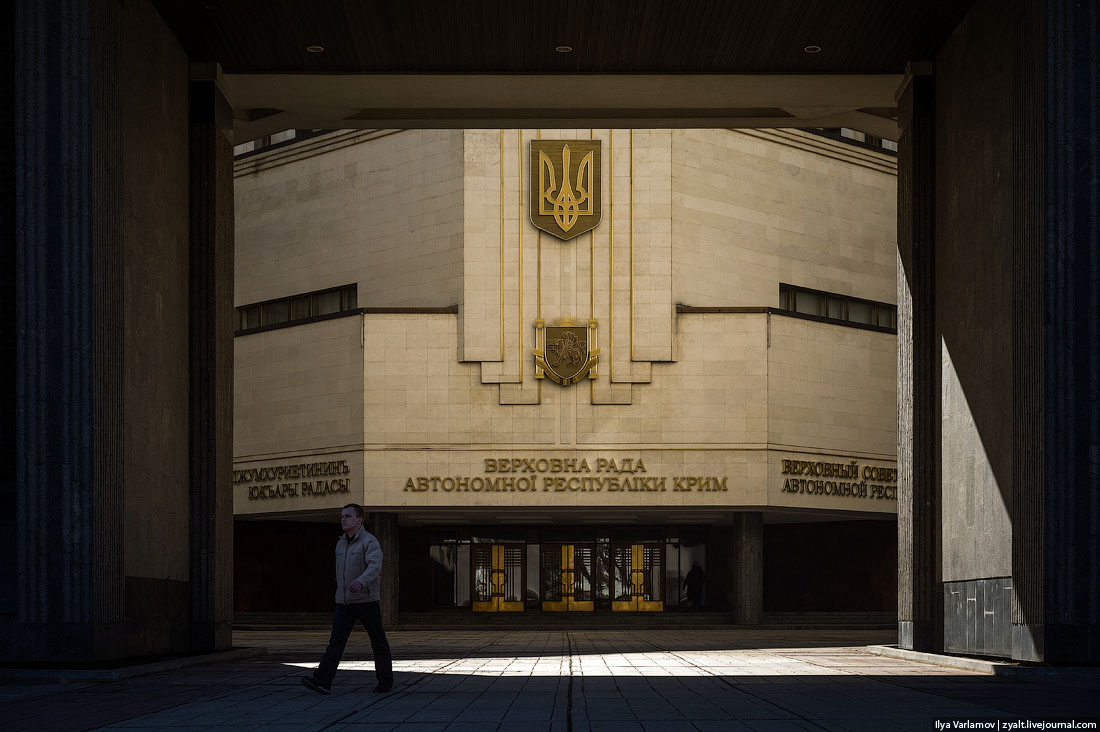 04. Рада вроде как работает, по крайней мере туда заходят люди в костюмах, а не в форме ) Над радой подняты два флага - крымский и российский триколоры.