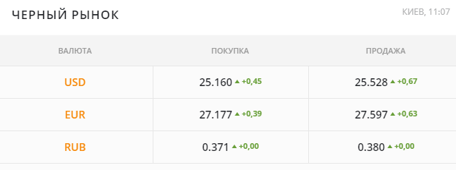 Вслед за межбанком активно растут цены наличного валютного рынка. Средняя стоимость доллара на продаже людям утром подскочила на 30 копеек, и оказалась в широком коридоре — 25,20-25,50 грн/$. Минимальный курс достиг 24,80 грн/$ (его держит, в частности, государственный Укргазбанк), максимальный — на 25,80 грн/$. При этом выкуп валюты у населения происходит в рамках 24,30-25,10 грн/$.