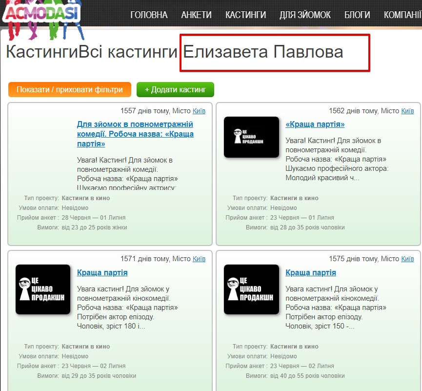 Однако все, кто имел с Павловой дело по фильму «Лучшая партия», предупреждают, что новую картину может постичь та же участь, поскольку аферистка не меняет своих «методов» работы. И остается догадываться, почему до сих пор с ней кто-то готов сотрудничать.