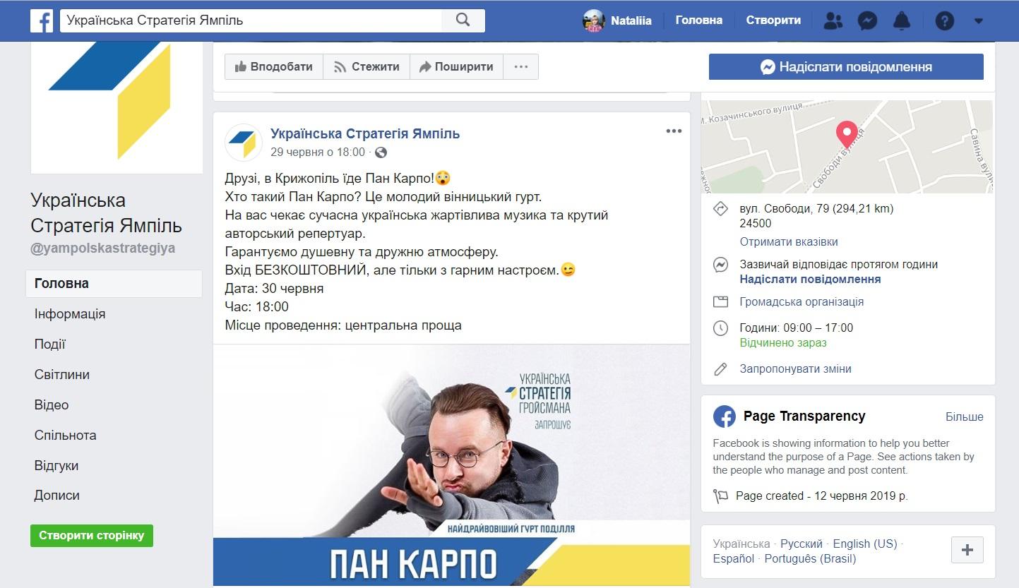 Группа "Пан Карпо” выступала за партию на Виннитчине: 30 июня - в Крыжополе, 2 июля - в селах Самгородок Калиновского района и Дорожном Бершадского района.