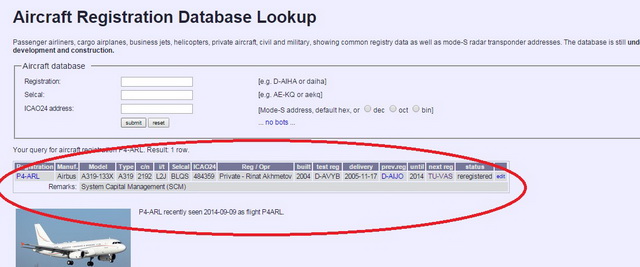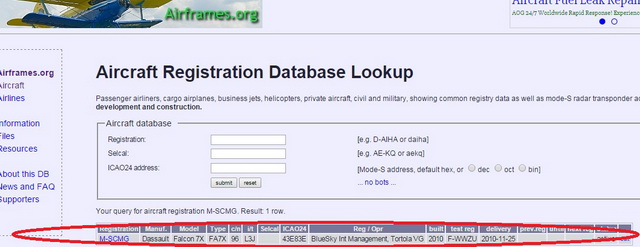 Об этом свидетельствуют данные нескольких порталов, собирающих информацию о воздушных суднах и отслеживающих их передвижение. (http://www.airframes.org/http://planefinder.net/,http://www.planepictures.net/)