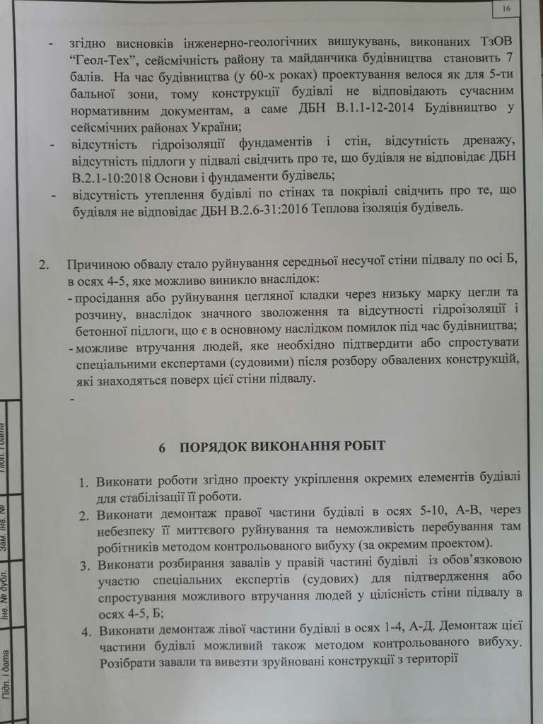 В отчете также предложено выполнить порядок работ по демонтажу здания, методом контролируемого срыва.