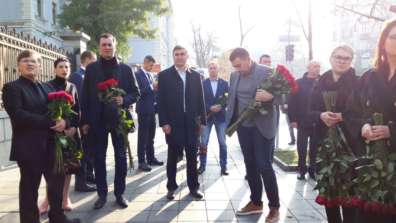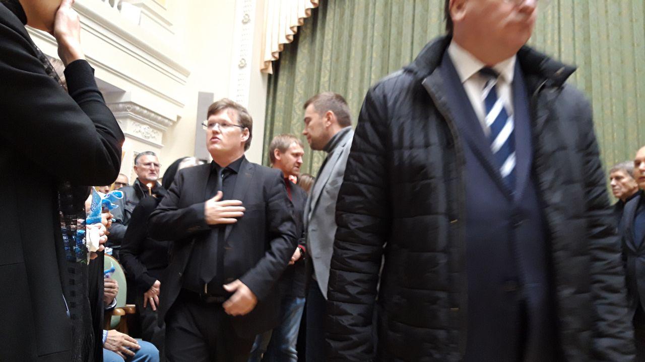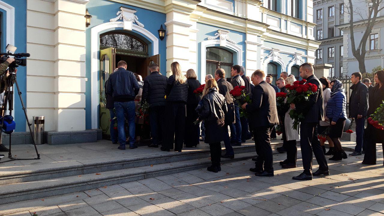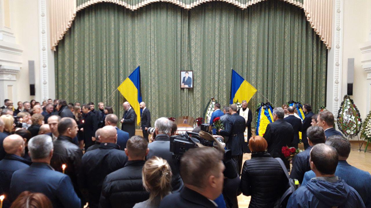 Среди присутствующих - родные и близкие погибшего, а также экс-глава Государственной фискальной службы Украины Роман Насиров, экс-министр социальной политики Андрей Рева, бывший вице-премьер-министр Павел Розенко.