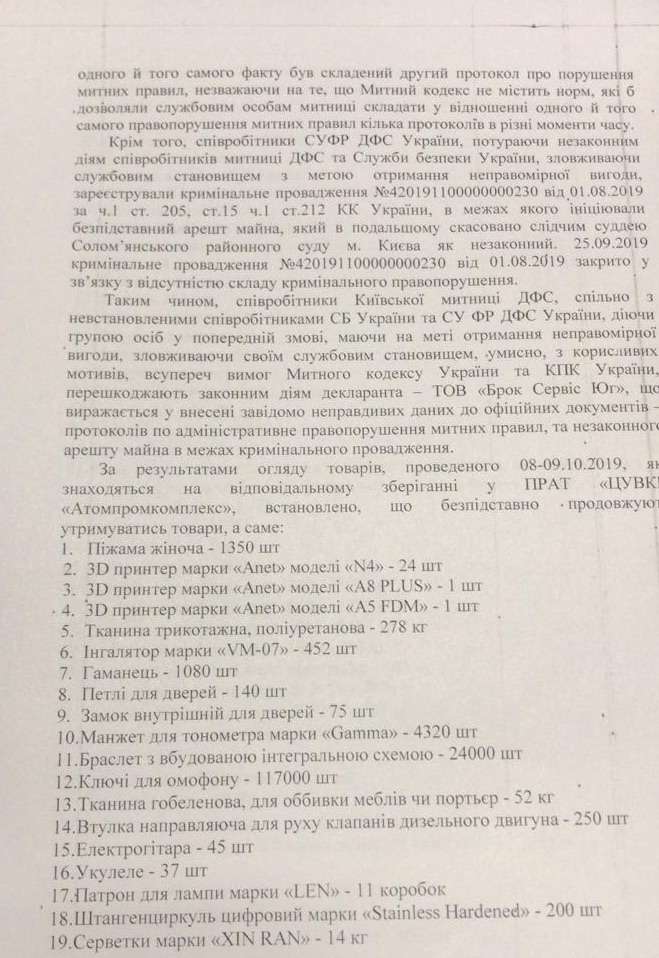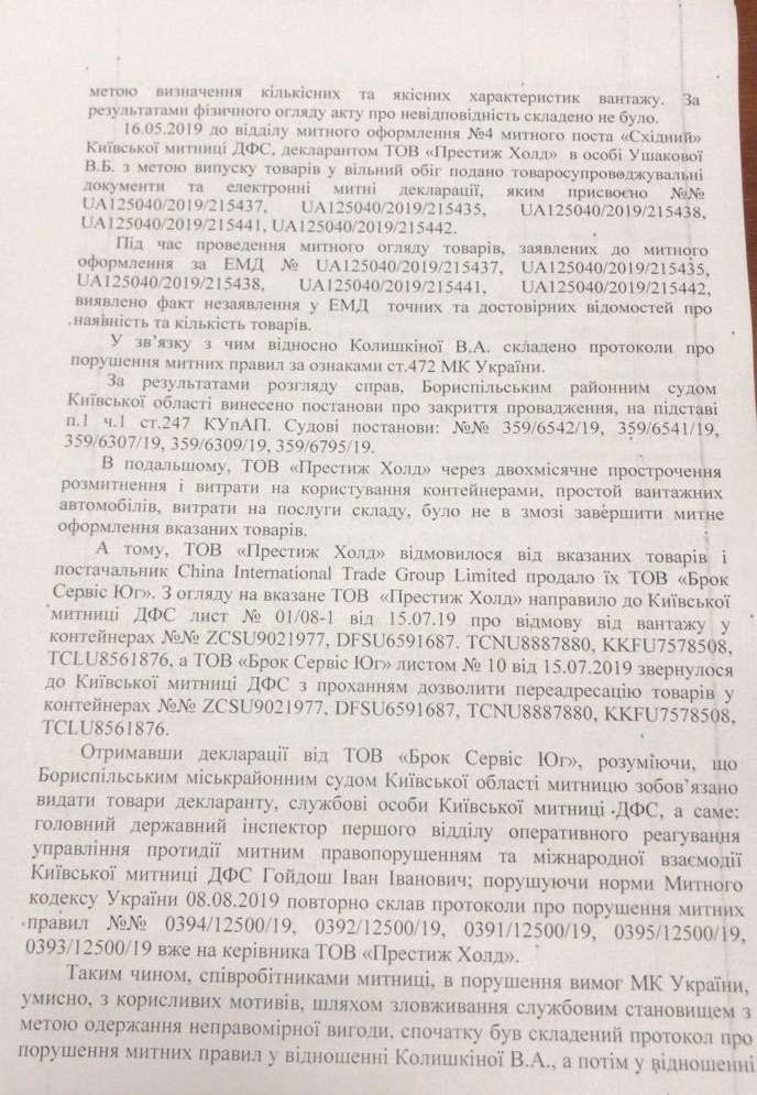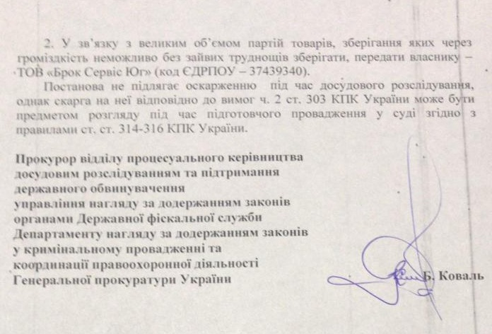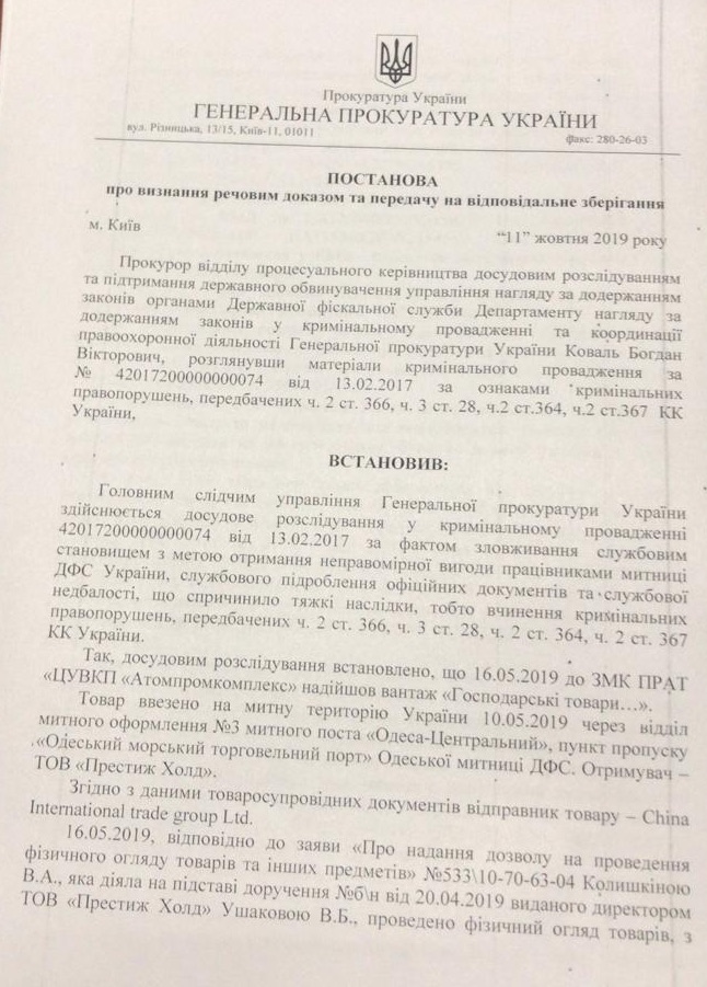 Сюжет прост до безобразия. 11.10.19 в 19:30 на Киевскую таможню, таможенный пост «Пролиски», приехали сотрудники ГПУ и УВБ СБУ с целью под протокол признания вещественными доказательствами забрать товар (5 контейнеров с контрабандным товаром  фирмы «Престиж холд», подконтрольная группе Аминева-Сердюка) и в последующем отдать на ответственное хранение подконтрольной Аминеву-Сердюку фирме «Броксервис Юг». Но, естественно, не даром.