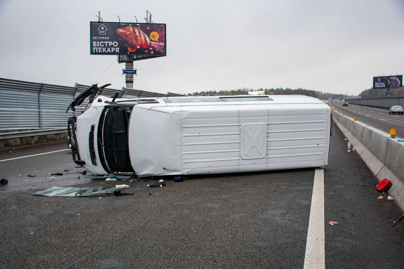 Под Киевом микроавтобус влетел в отбойник и перевернулся