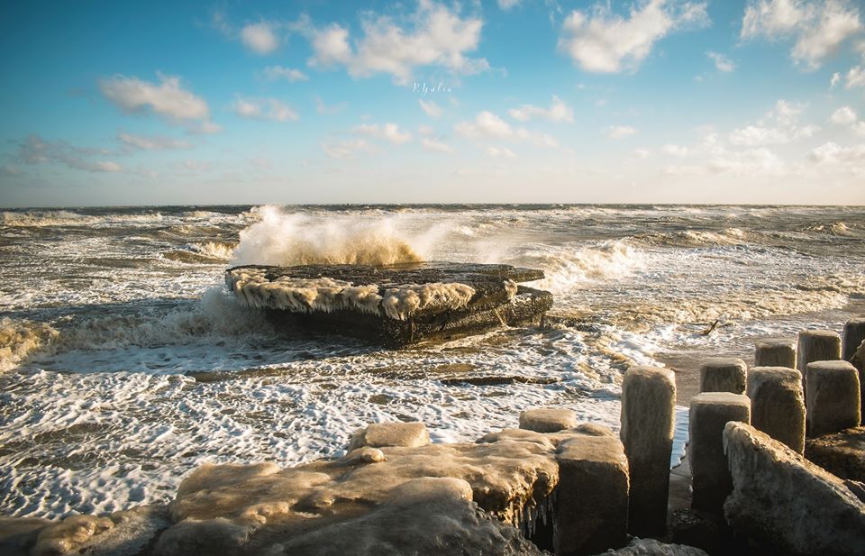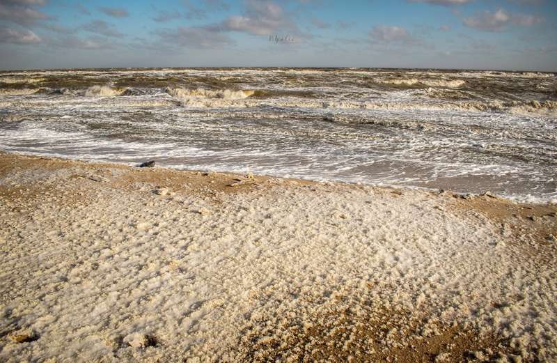 Замёрзшая пена, капли воды и ледяные дюны – вот такая картина предстала перед взором фотографа. Она же, в свою очередь, рассказала, что фотографировать было хоть и сложно из-за ветра, но результат того стоит. Защищалась одеялом и пуховиком.