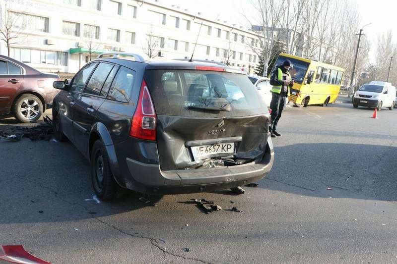 Renault ехал по улице Днепросталевской в сторону жилмассива Северный. Водитель притормозил, чтобы повернуть налево и включил «поворотник». В этот момент в него влетел Nissan. Из-за столкновения Renault выбросило на встречную полосу, где он столкнулся с Ford.