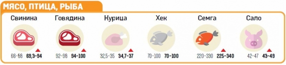 Также повысятся цены на свинину и говядину. Во-первых, это связано с сокращением производства. «С начала года предложение свинины уменьшилось на 7%, а говядины — на 4%», — отмечает академик НААН Юрий Лупенко. Во-вторых, подстегивают рост цен на мясо и повышение налогообложения аграриев, их стремление компенсировать рост цен на энергоресурсы, импортные корма и средства защиты животных. В-третьих, активизация экспорта. «Сейчас экспортеры активизировались из Азербайджана и других стран: приезжают и скупают говядину в живом весе. Из-за падения гривни они готовы платить больше. И та же говядина могла бы подорожать для украинцев более существенно. Но из-за сокращения потребления цены в апреле вырастут всего на 2–3%», — отмечает эксперт УКАБ Алина Жарко.