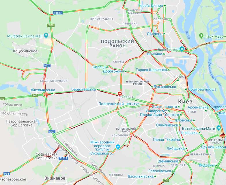 Тяжелее всего проехать с левого на правый берег по направлению к центру города. Движение авто на всех мостах затруднено: Южном, Дарницком, Патона и Северном.